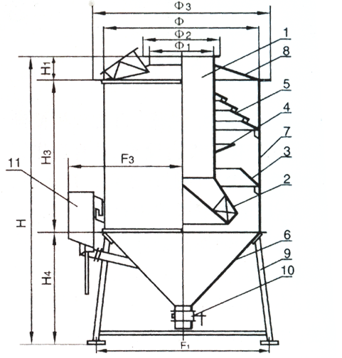 旋流水浴脫硫除塵器簡稱水除,又叫水浴除塵器.在濕法沖激除塵器中,水浴除塵器是 受歡迎一種結(jié)構(gòu)簡單、造價低,便于維護管理的除塵器。此種類型已歷經(jīng)十五年以來的運行時間,充分證明其運行的穩(wěn)定可靠,且可因地制宜用磚石或混凝土砌筑結(jié)構(gòu),適用于較小容量鍋爐的煙氣凈化與脫硫。